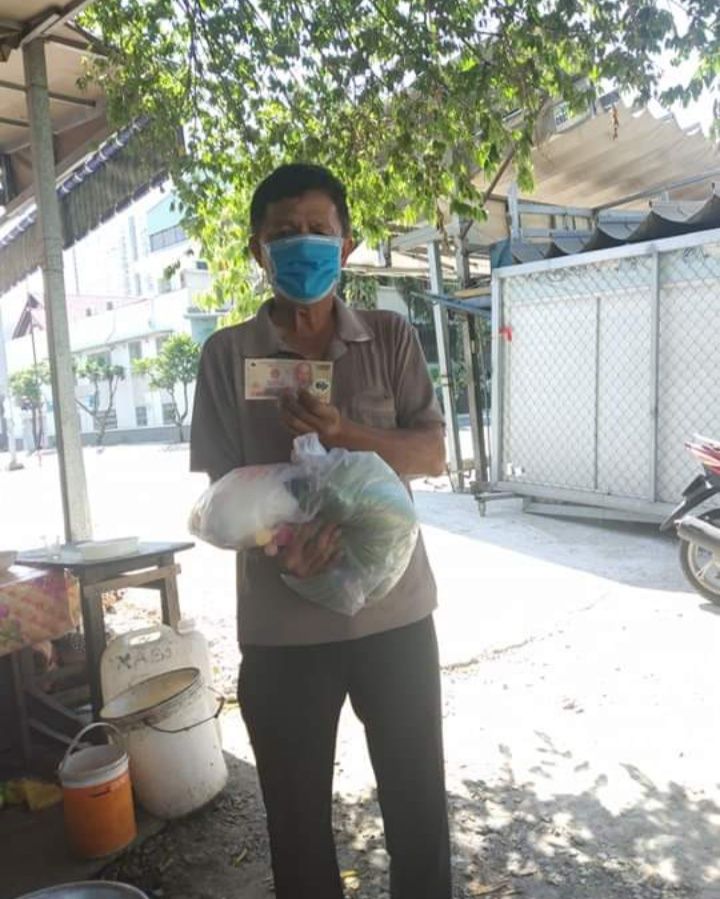 Hình ảnh chú Tư nhận quà từ tay anh Kim Bằng trao + 200.000đ  Mai Trâm  xin gửi đến cả nhà cùng nắm được.