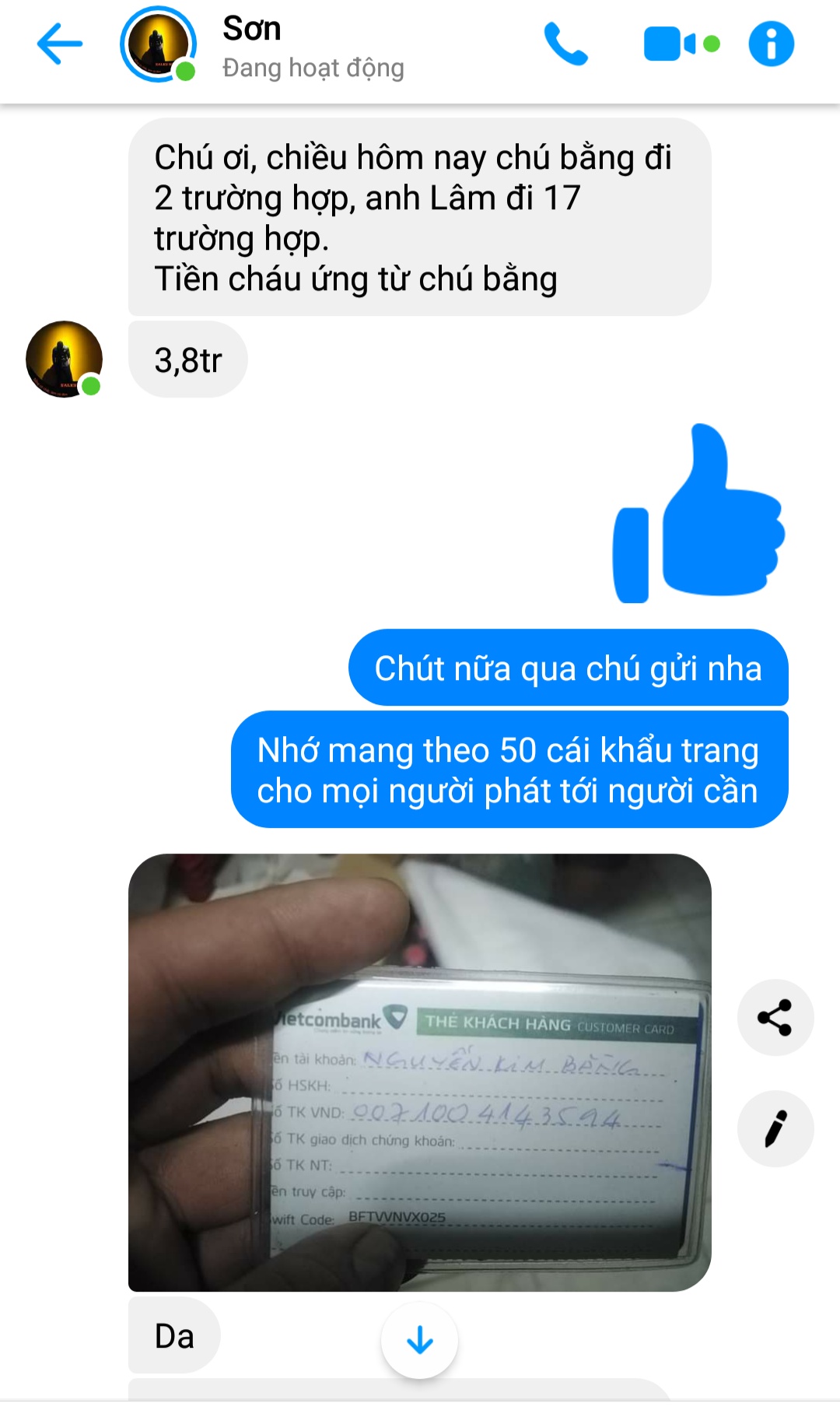 Hôm qua Minhson97 báo với 6x là bác Kimbang ứng 3,800,000đ ...