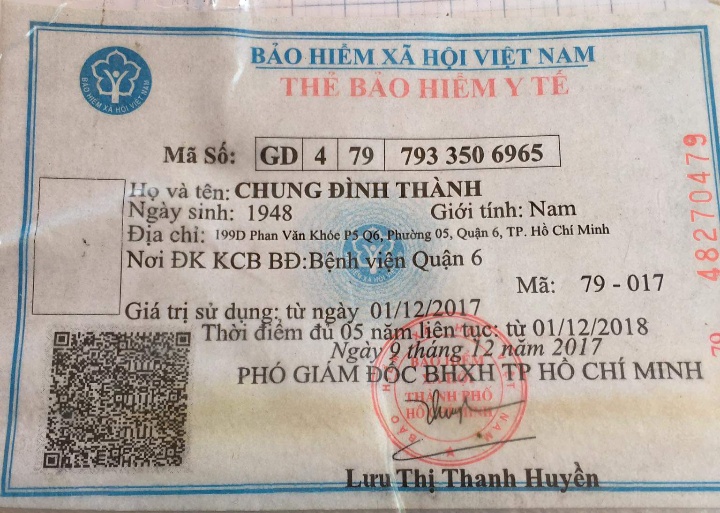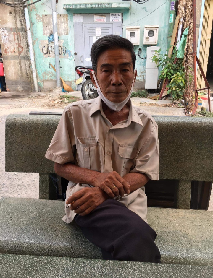 Chung Đình Thành,, 62 tuổi, bán vé số dạo, hiện không có thu nhập. Ở nhờ nhà người em trong căn phòng nhỏ chừng 9m2.