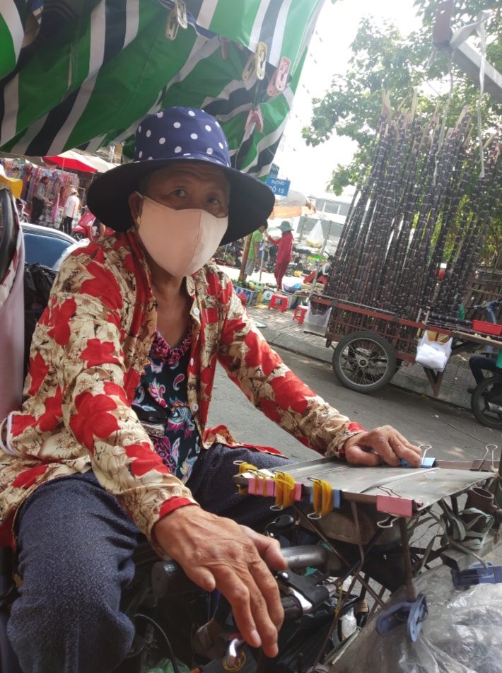 Cô tên Lương Thị Mai 64 tuổi. Cô Mai không có chồng con còn mẹ già 88 tuổi cô Mai hàng ngày đi bán vé số ở chợ Phạm thế hiển