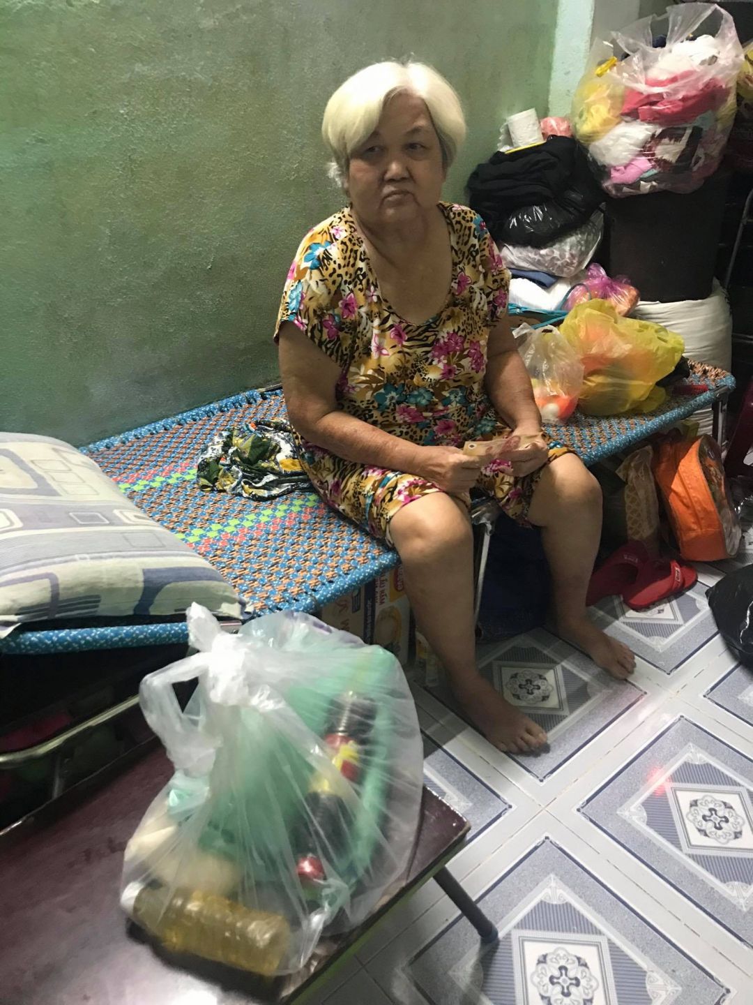 Bà ơi không chồng con ba mẹ chết hết hiện tại Bà sống một minh thời gian nay thất nghiệp lớn tuổi không có ai thuê chỉ dựa vào nghề bán vé số để mưu sinh.