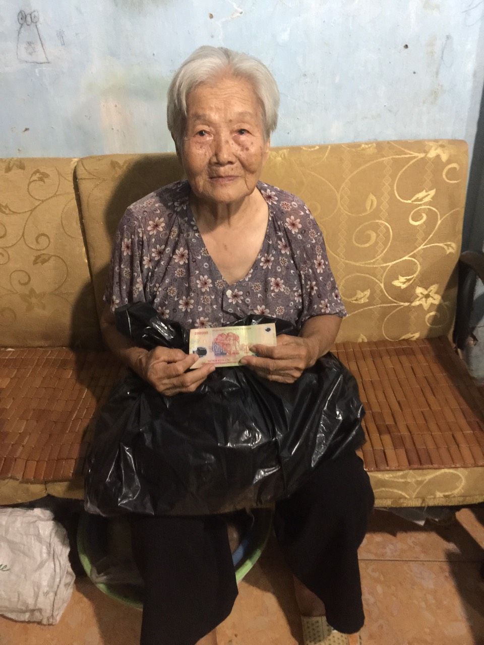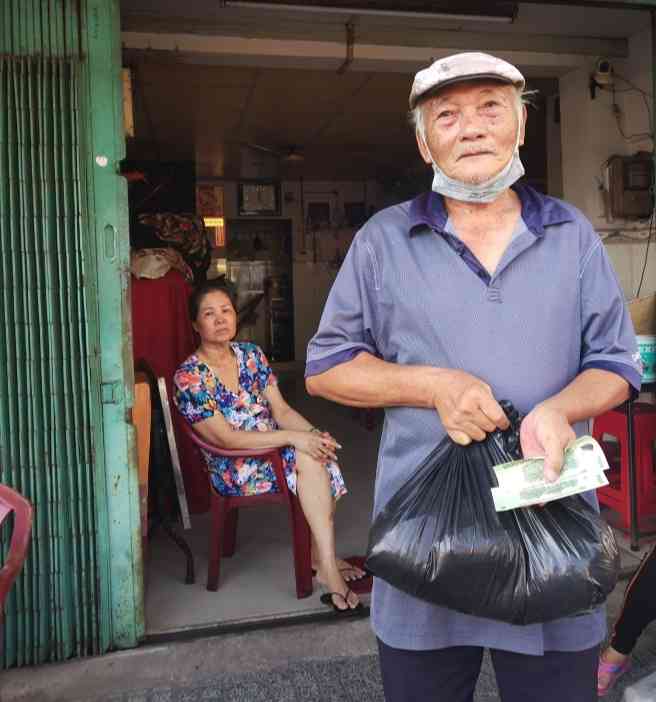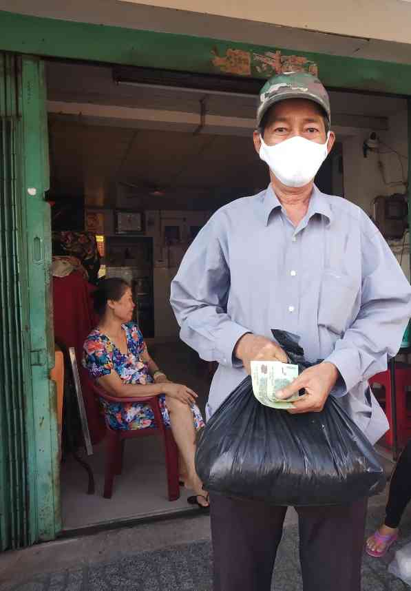 Hình ảnh chú Phát nhận quà cộng với 200k.