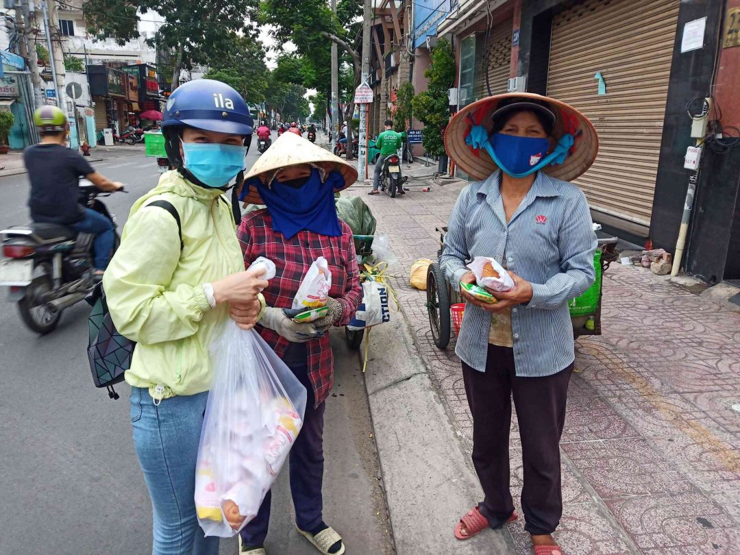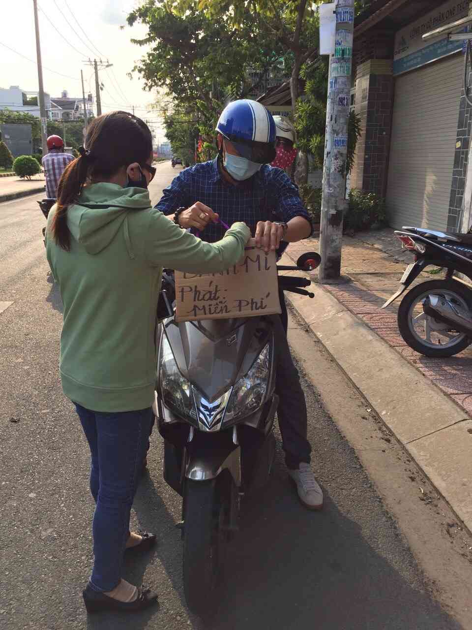 Hình ảnh nhóm bạn của Nhung trai bánh mì cho bà con ngày hôm qua.