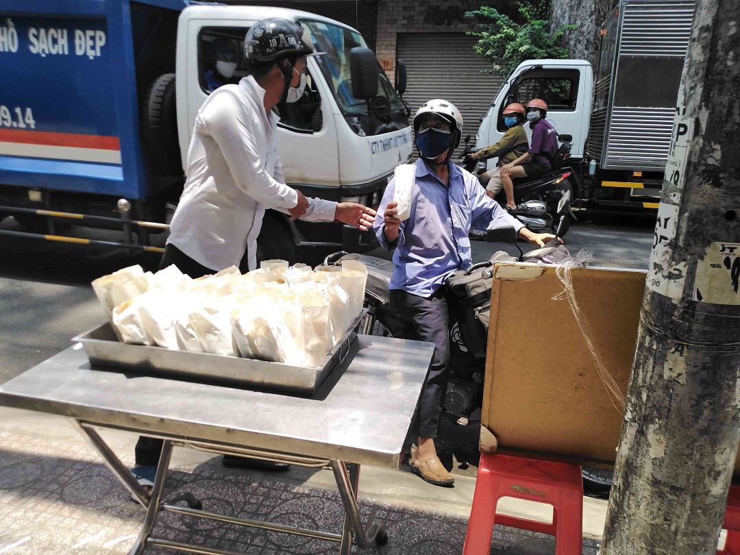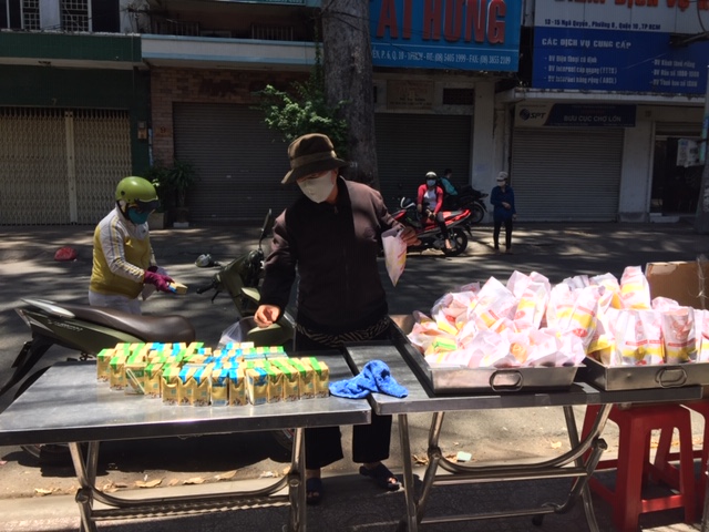 Hôm nay là ngày thứ hai chúng ta chạy chương trình phát bánh mì thịt cho bà con, những hoàn cảnh khó khăn trong mùa dịch.
