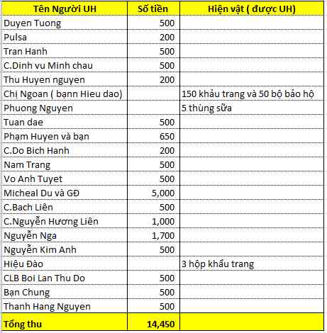Moij sự đóng góp bằng tiền xin gửi về thủ quỹ của diễn đàn với cú pháp “ tên người UH- NCOVID 19-HN “