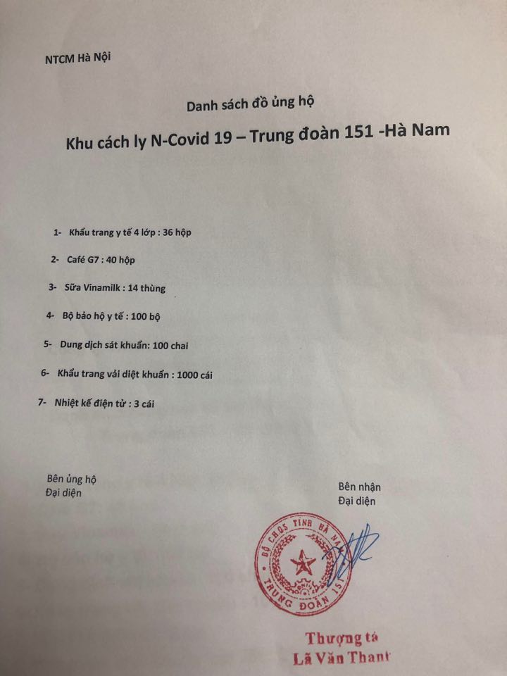 Duyen tuong cập nhập thu chi chương trình " ĐỒng hành cùng người lính " khu cách ly Hà Nam.