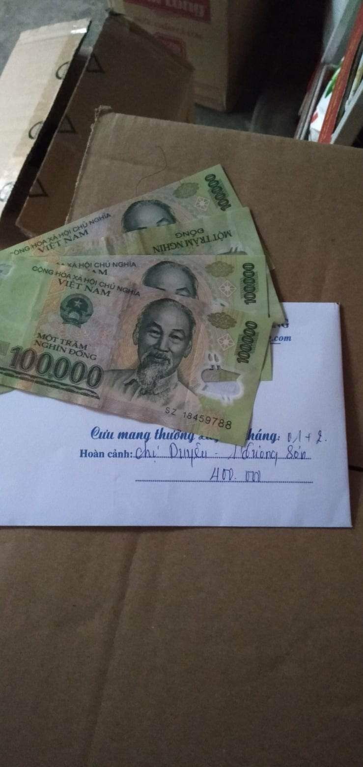 ( VKS hỗ trợ 188.000 mua thêm gạo và như yếu phẩm cho gđ chị Duyên)