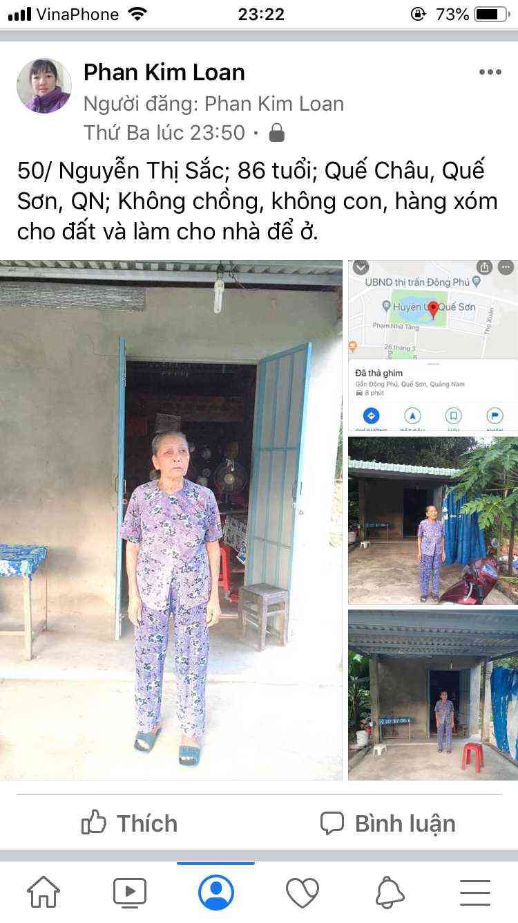 50/ Nguyễn Thị Sắc; 86 tuổi; Quế Châu, Quế Sơn, QN; Không chồng, không con, hàng xóm cho đất và làm cho nhà để ở.
