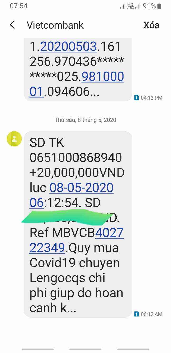 Quỹ ủng hộ khó khăn mùa Covid 19 đã chuyển TK Lengoqs 20,000,000₫ để thực hiện chương trình .
