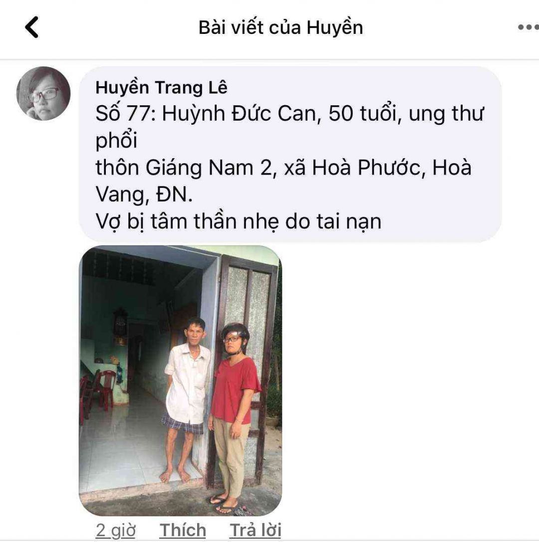60 tuổi, bị ung thư sống một mình, thôn Giáng Nam 2, xã Hoà Phước, Hoà Vang, ĐN, khi chúng tôi ghé thăm thì ông đang đi xạ trị ở BV nên ko gặp