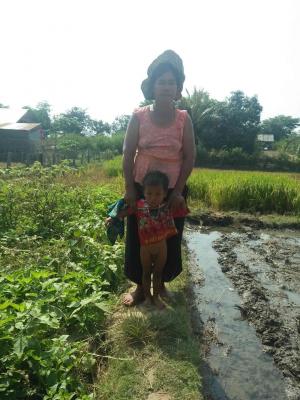 + Gia đình Bà và 2 bé mồ côi sống nhờ vào miếng ruộng ngoài vườn ,1 vụ thu đc 5 bao lúa.