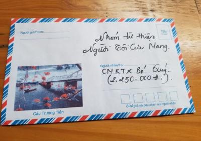 Nhóm Huế đã trao CMKTX hỗ trợ học phí cho em Nguyễn Thị Ngọc Quý. Vì em Quý đi học nên nhóm đã trao cho chị gái của em.