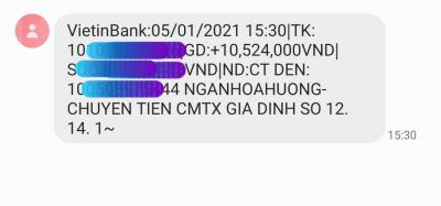Khoản tiền mặt 300,000đ/tháng đã có Hanoi giúp đỡ từ tháng 9/2020 đến hết tháng 1/2021.