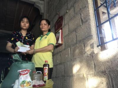 Xin chào! Hôm nay quà tháng 8 đã đến nhà a Tám ở thôn Chầm nhưng a ấy đã nằm viện do thương tật để lại nên con gái a Tám nhận quà. Thay mặt gia đình cám ơn sự quan tâm giúp đỡ của hội thiện nguyện NTCM và những mạnh thường quân rất nhiều