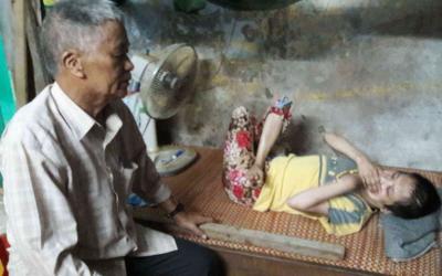 - Con gái: Hồ Thị Trà My, bị bại não bẩm sinh, không biết gì, ăn, vệ sinh tại chổ ( khi em đến em ấy mới được bác Hòa bế ra nhà tắm nên em không chụp ảnh được). Hỗ trợ hàng tháng được 500.000đ.