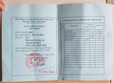 Gia đình có sổ hộ nghèo. Nhưng chỉ được hỗ trợ về bảo hiểm y tế. Hoặc nếu có chương trình ai tặng gì, thì dc ưu tiên vì hộ nghèo.