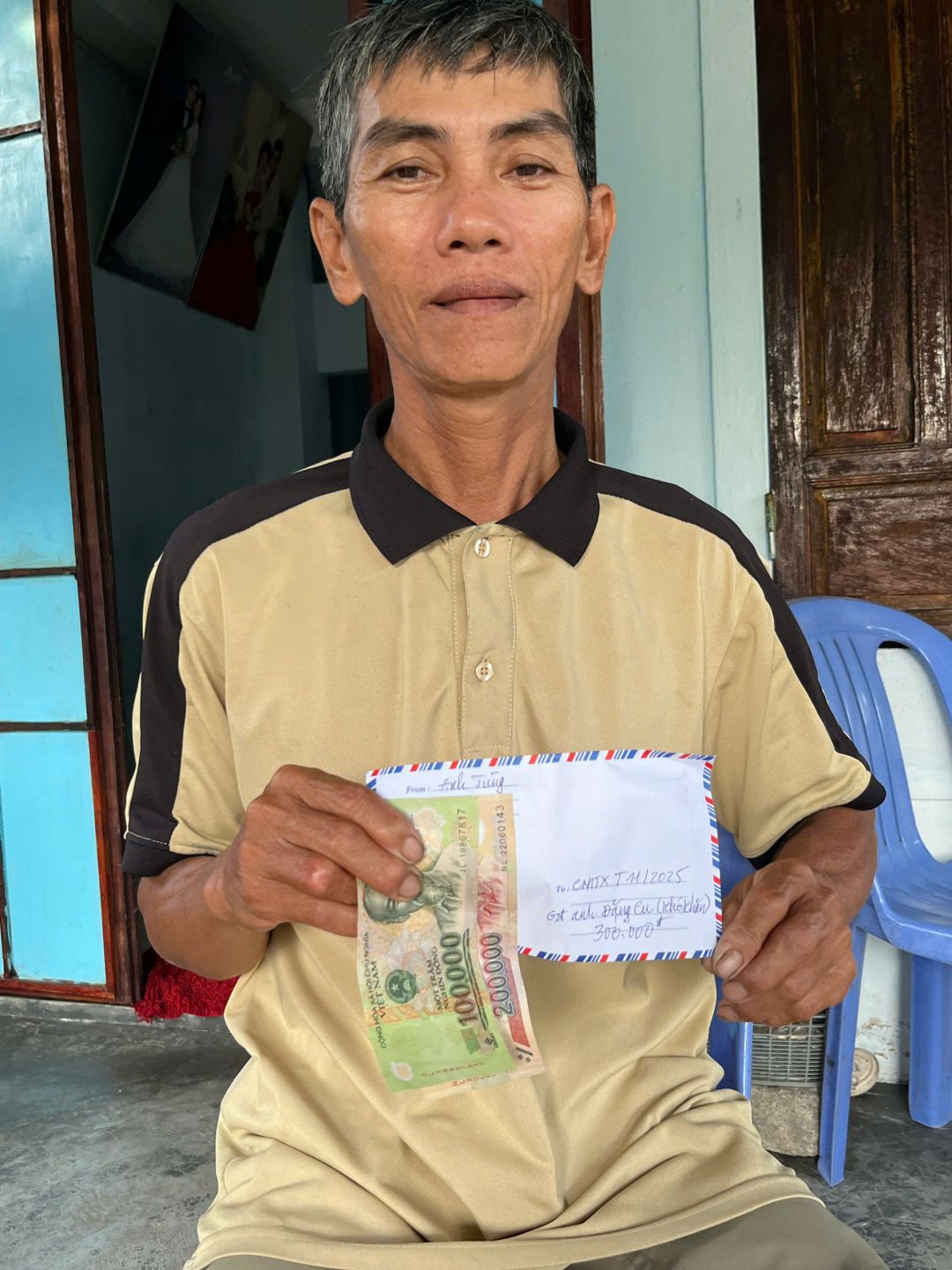 Được sự cưu mang tiếp theo ở tháng 7 và 8, hôm nay ngày 13/7/2025, Quang đã trao quà CMTX tháng 07/2025 đến với gia đình anh Đặng Cu (khó khăn). Quà của Quý MTQ là tiền mặt 300.000đ. Nhận được quà, anh Đặng Cu rất cảm động và gửi lời cảm ơn rất nhiều đến với Quý mạnh thường quân ạ!