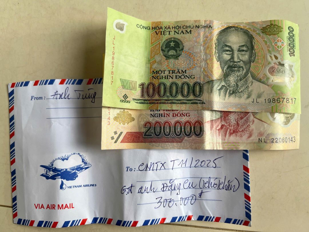 Anh Tùng gởi 600.000đ CMTX tháng 5,6 đến gia đình anh Đặng Cu.