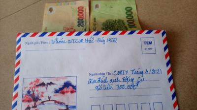 Hôm nay (9/5/2021), mình đã đến trao tấm lòng cưu mang của quý MTQ là quà CMTX tháng 5/2021 với số tiền 300.000đ cho gia đình anh Đặng Cu ở Vinh Hưng, Phú Lộc, TT.Huế. Thay mặt gia đình, anh gửi lời cảm ơn rất nhiều đến nhóm NTCM Huế cùng với quý MTQ.