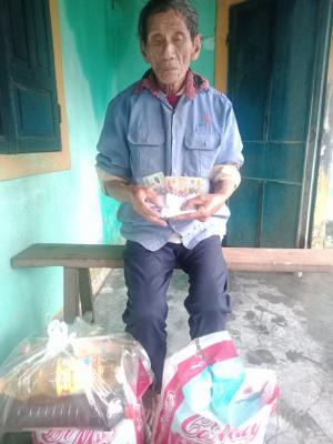 Hôm nay 16/8/2021, Quang đã trao quà CMTX tháng 7 và 8/2021 gồm tiền 800.000đ, gạo và nhu yếu phẩm đến với bác Hồ Trai sống neo đơn ở xã Vinh Hưng, huyện Phú Lộc, tỉnh TT.Huế.