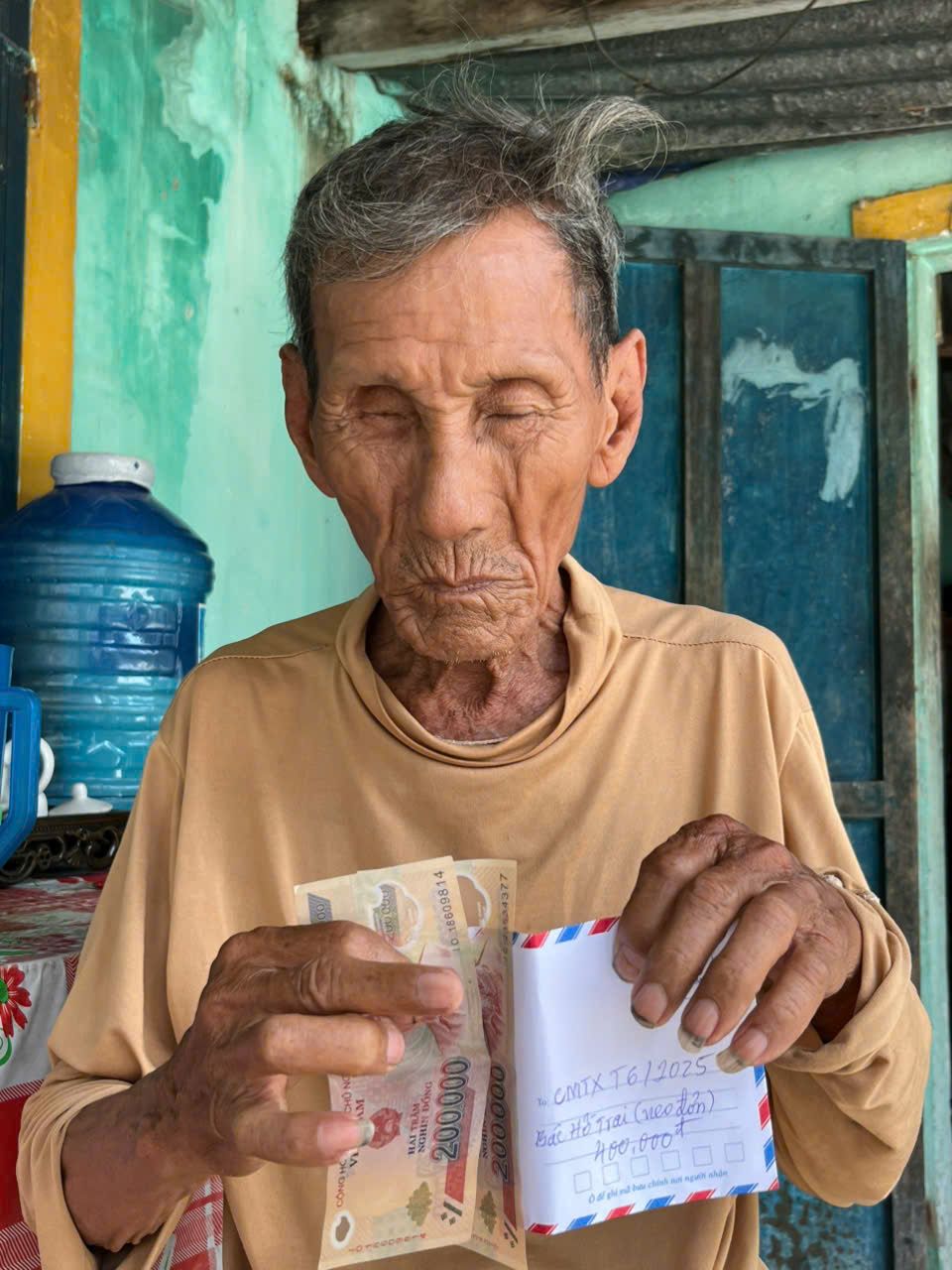 Được sự cưu mang tiếp theo ở Quý III/2025, hôm nay ngày 13/7/2025,  Quang đã trao quà CMTX tháng 07/2025 đến với bác Hồ Trai (neo đơn). Quà của Quý MTQ là tiền mặt 400.000đ. Nhận được quà, bác rất vui và gửi lời cảm ơn rất nhiều đến với Quý mạnh thường quân ạ!