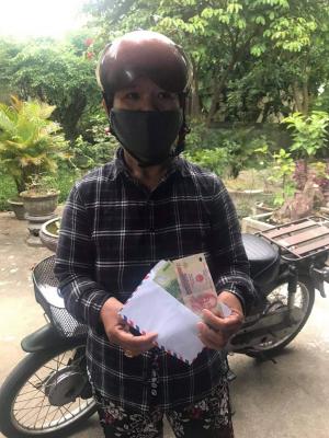 Hình bên dưới cho thấy có khoản tiền cùng Gạo và các nhu yếu phẩm được trao tới cụ Bé