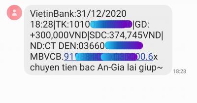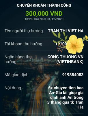 6x sẽ chuyển 300,000đ của bác An về tài khoản của Tran Ha để nhờ các bạn khu vực Huế trung chuyển tới Gia đình anh Nam dùm.