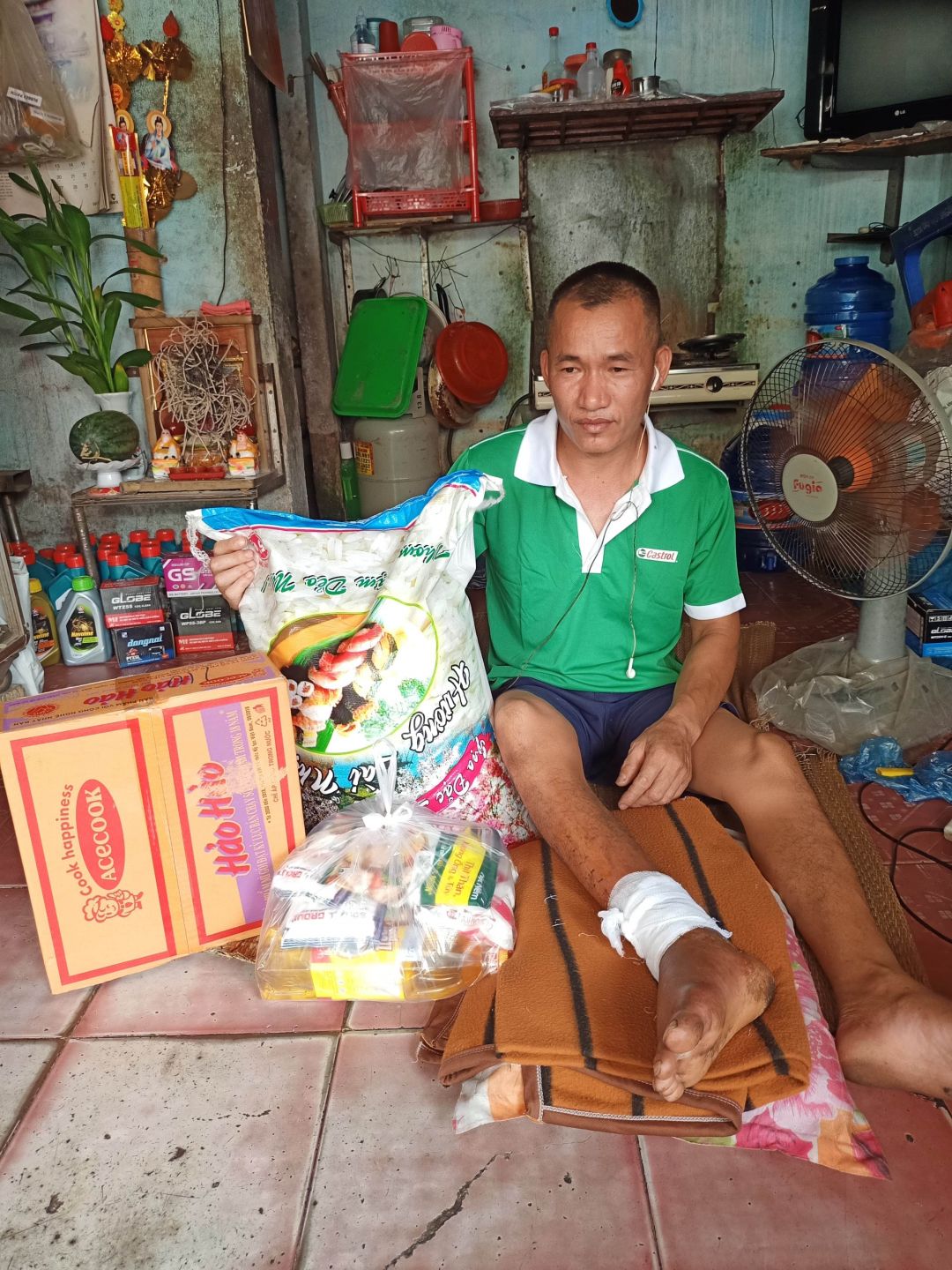 Anh là lao động chính trong nhà, lo cho gia đình và người con đang mắc bệnh ở quê, vợ anh không biết chạy xe ngày nào cũng phải đi xe ôm lên bệnh viện thăm anh,mỗi ngày chị ở nhà bom bánh xe để kiếm tiền mua cơm đem vô cho chồng ăn, mỗi ngày chị kiếm được khoảng 15 đến 20.000vnđ .