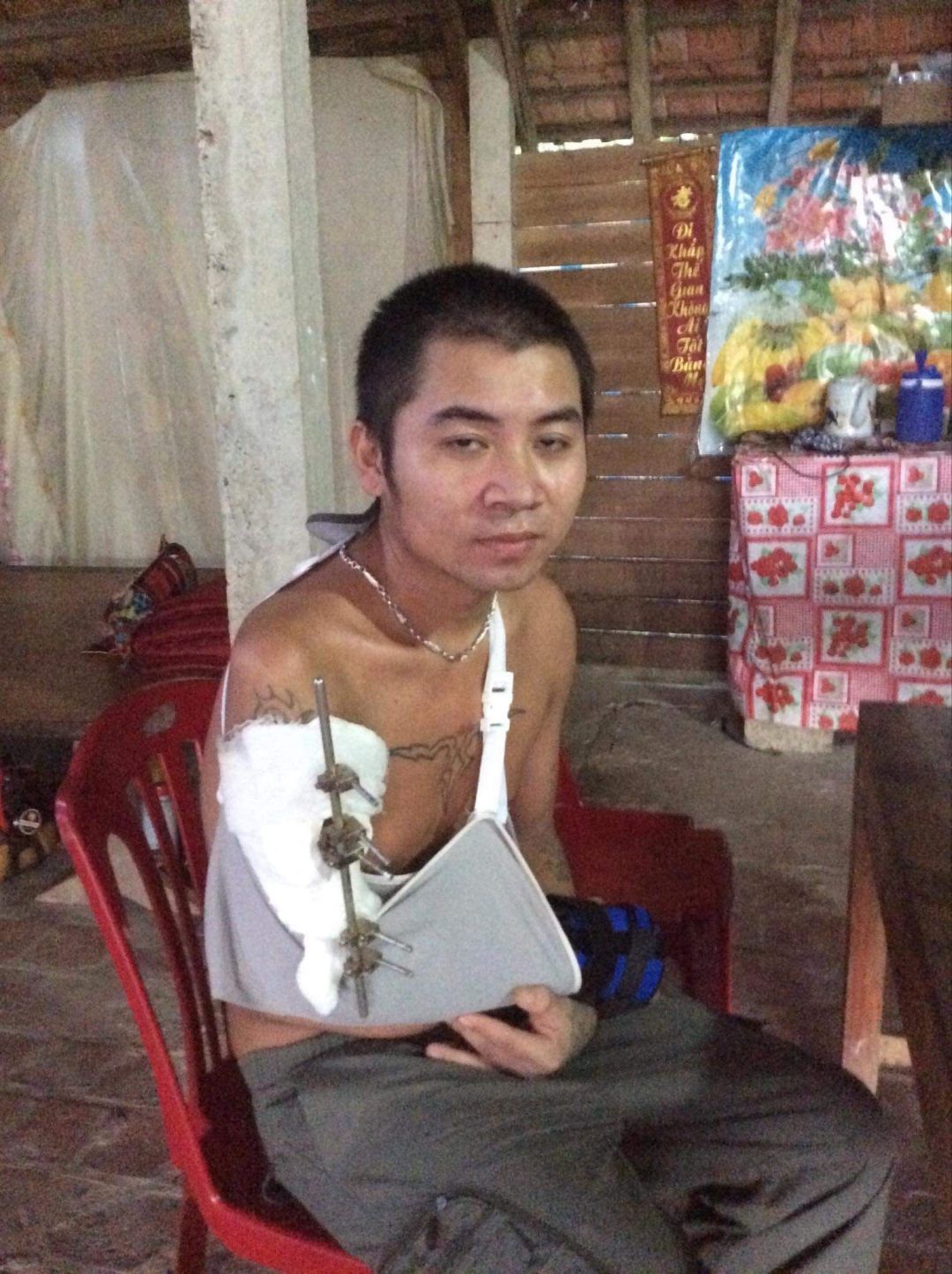 Hiện tại em Đạt đang nằm ở Tầng 4 cấp cứu nội soi bụng (nhà D) - phòng 420, giường 31. Tình trạng hiện tại của em Đạt là đã nối tay xong, tuy nhiên do tình hình ổ bụng các mô tạng còn đang bị dập, nhiễm trùng (đã phẫu thuật lần 1, đang truyền máu và hút dịch ở phổi) nên sẽ đợi đến khi tình trạng ổ bụng đỡ hơn thì mới tiếp tục các bước ở tay. Tình trạng ở mức nguy hiểm