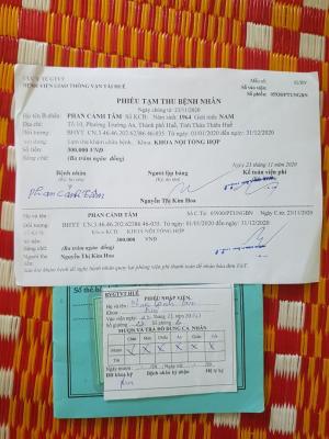 Khi đi trao CMTX tháng 11/2020 đến gia đình dì Thơm thì được biết em của dì Thơm là chú Phan Cảnh Tâm đã đi nằm viện được 6 ngày rồi. Chú Tâm mấy hôm nay bị mệt và khó thở vì do chú đã bị bệnh đau tim lâu nay. Bác sĩ yêu cầu phải nằm viện. Gia đình dì đã khó khăn nay lại khó khăn hơn. Gia đình dì Thơm thuộc hộ nghèo nên 1 phần viện phí nằm trong danh mục bảo hiểm. Tuy nhiên, ngoài ra, có 1 số phần thuốc men ngoài danh mục nên gia đình dì thêm khó khăn hơn. Dì Thơm đi bán vé số nuôi em ở viện và nuôi cháu bị bệnh lâu nay. Vì chú Tâm nằm viện điều trị, nên dì Tâm phải vừa đi bán vé số vừa lại trông cháu bệnh nằm ở nhà nên thu nhập từ bán vé số không được bao nhiêu. Đã khó lại khó hơn.