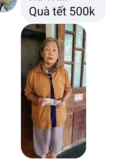 Hôm nay em đã đi trao phần quà Tết( 200.000đ)  đến hộ bà Liên rồi ạ.