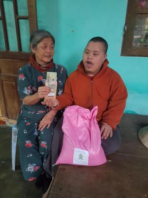Hôm nay em đã đi trao phần quà CMTX tháng 02/2021 và phần quà Tết đến hộ bà Liên rồi ạ.