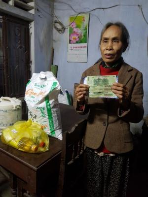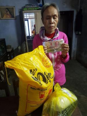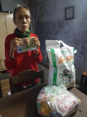 Hôm nay em đã đi trao phần quà CMTX tháng 01/2021 đến hộ dì Thu rồi ạ.