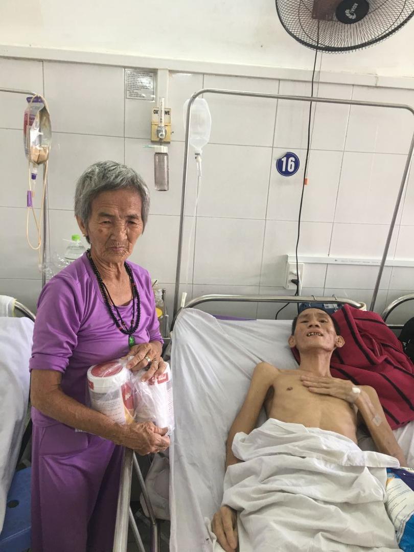 Hiện tại chúng ta có một số sữa dinh dưỡng nhận từ Sài Gòn. Theo thông tin trên thì bạn có thể cân đối để tặng hoàn cảnh này 1; 2 lon? Cho cả bệnh nhân và người chăm sóc, cụ đã 83.