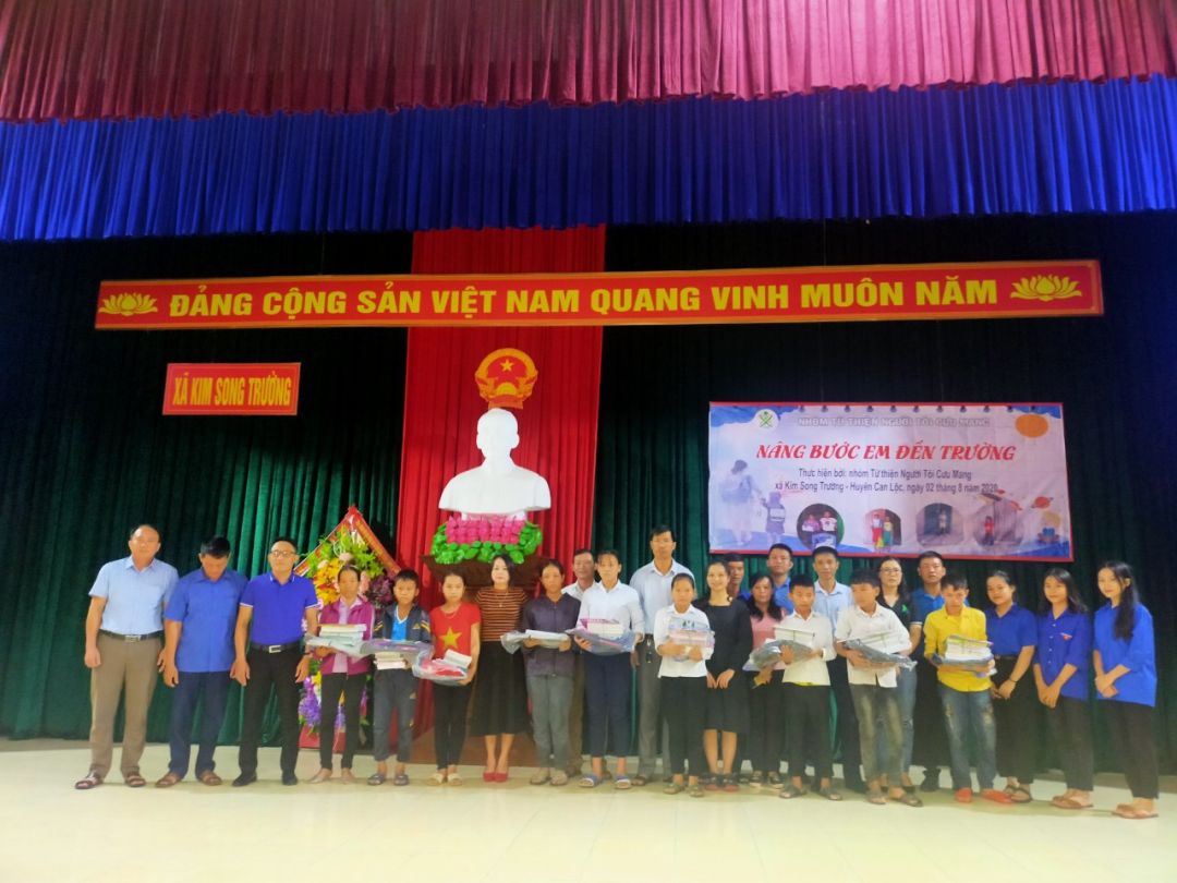 ngày 02/8 nhóm đã tổ chức trao quà chương trình NBEDT ở xã Kim Song Trường huyện Cạn Lộc - Tĩnh Hà Tĩnh theo đúng kế hoạch dự định. Tiếp sau là trao cho các em là con em của những hoàn cảnh hiện NTCM đang CMTX và CMKTX trong đó có 16 em hiện đang được sư thầy nuôi dưỡng ở chùa Yên Lạc xã Cẩm nhượng huyện Cẩm xuyên- Tĩnh Hà Tĩnh