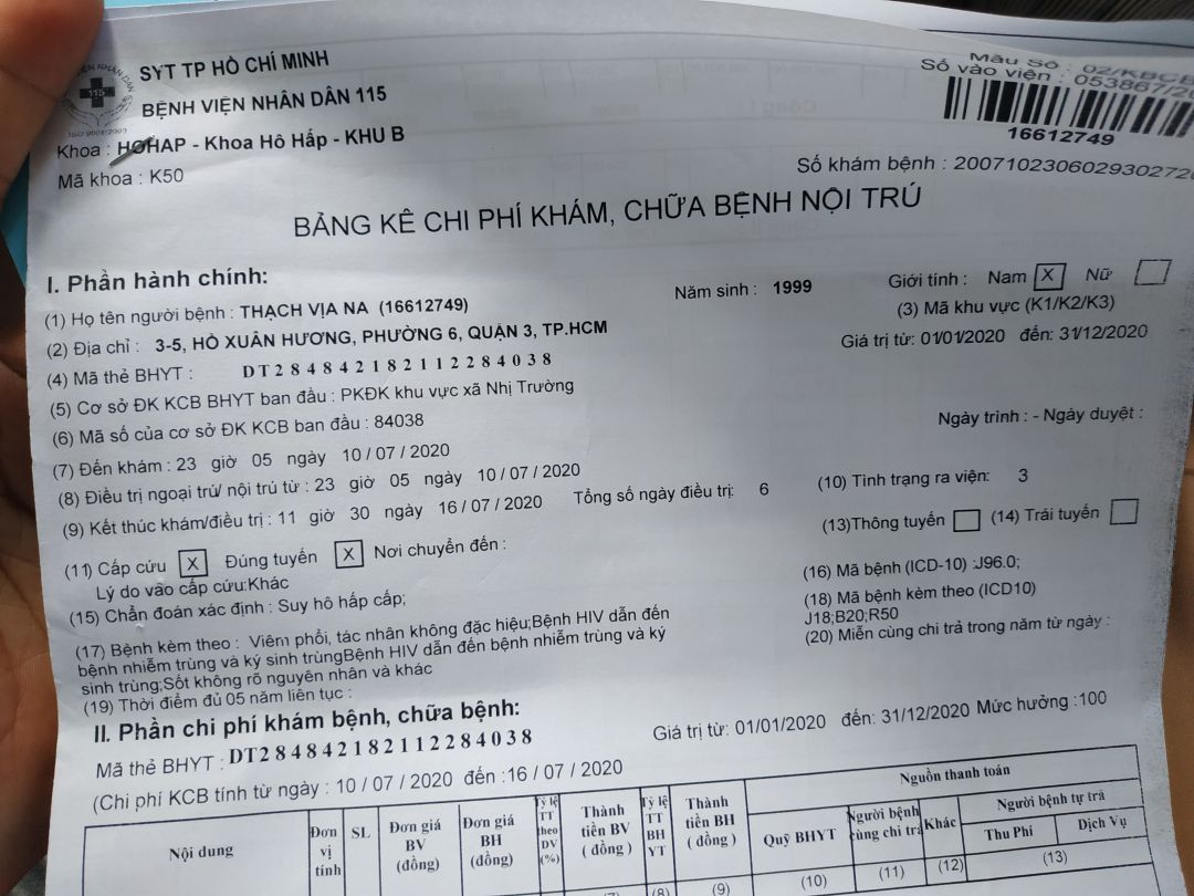 Bệnh viện ở quê không đủ khả năng điều trị nên chuyển bạn lên bệnh viện 115, tại đây, các bác sĩ chẩn đoán là viêm phổi nặng nên chuyển tiếp qua bệnh viện Phạm Ngọc Thạch để điều trị đúng chuyên môn.