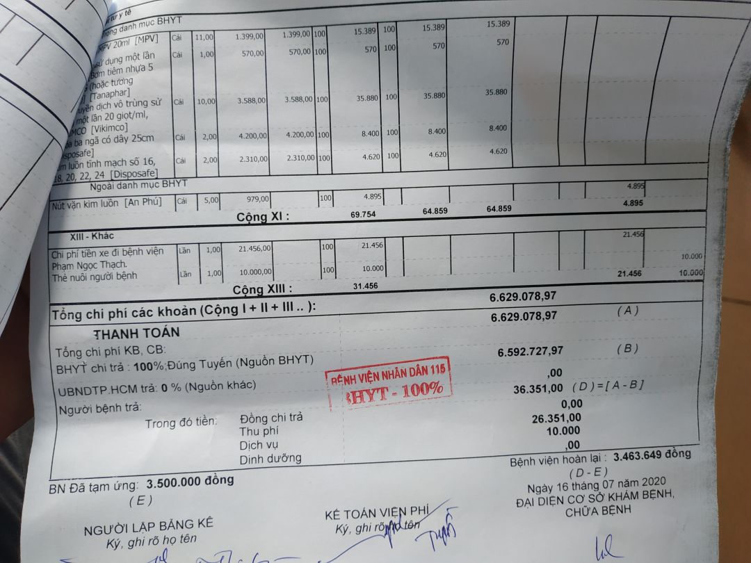 Lúc nhập viện ở đây, gia đình mới đóng 1 đợt tạm ứng 3 triệu.