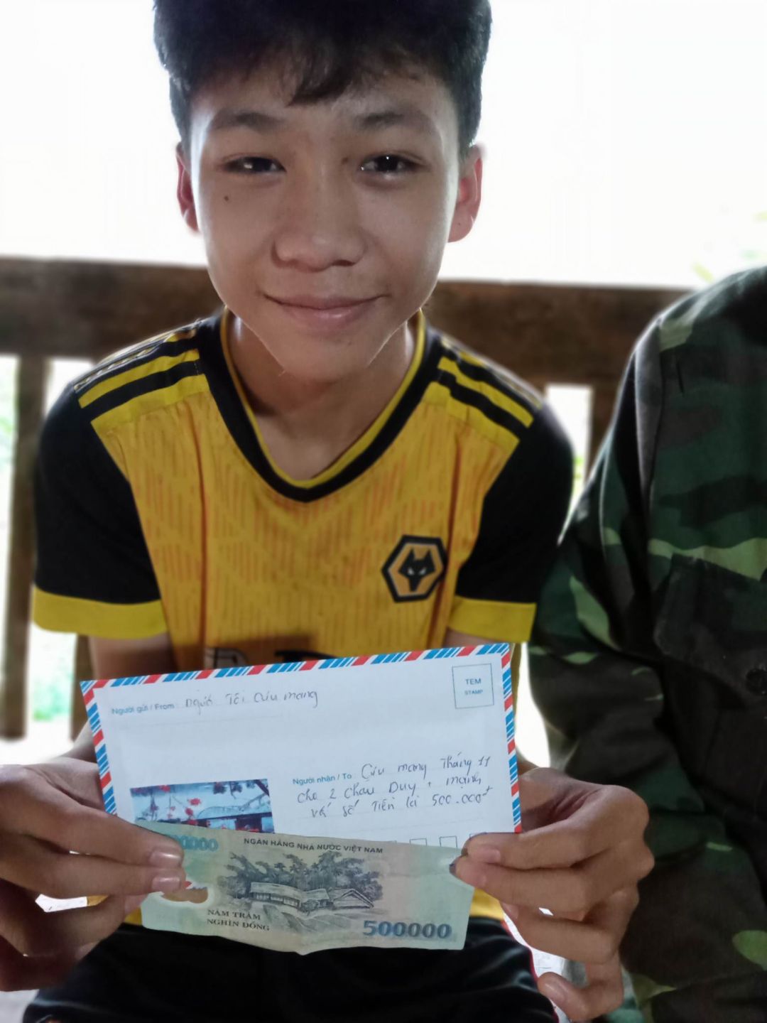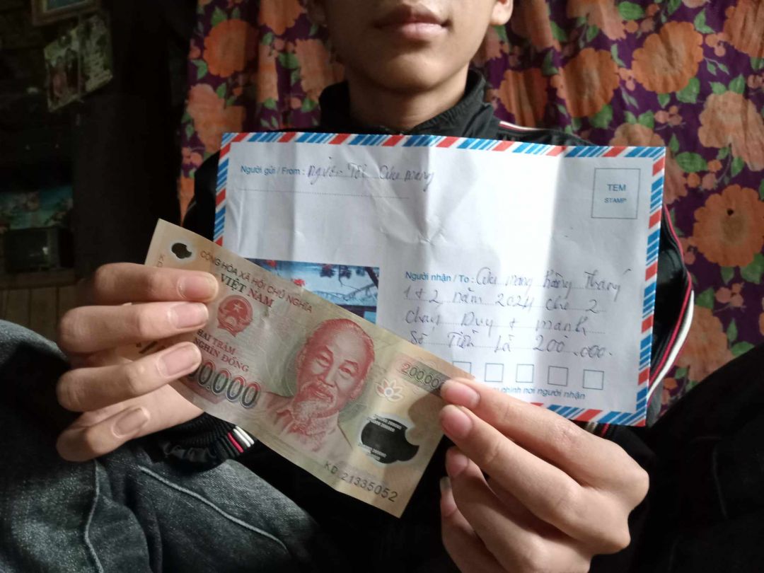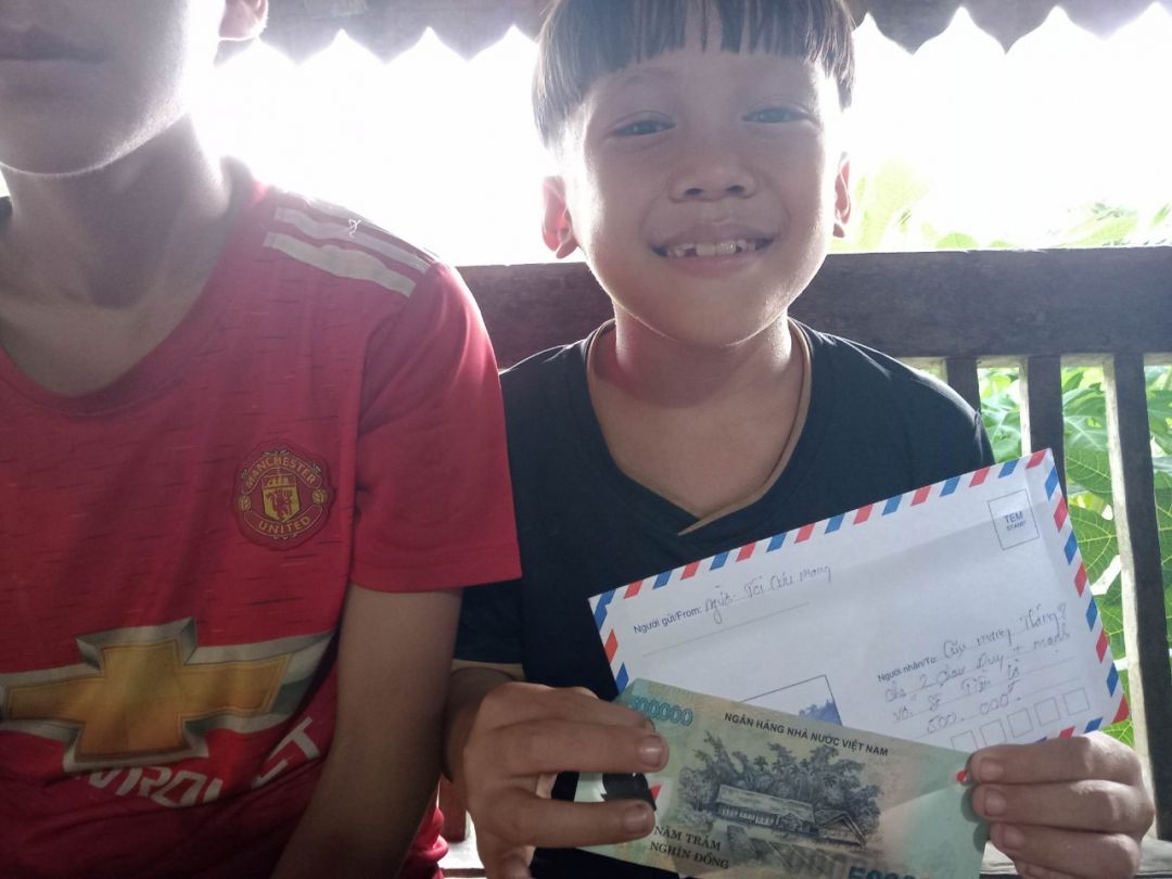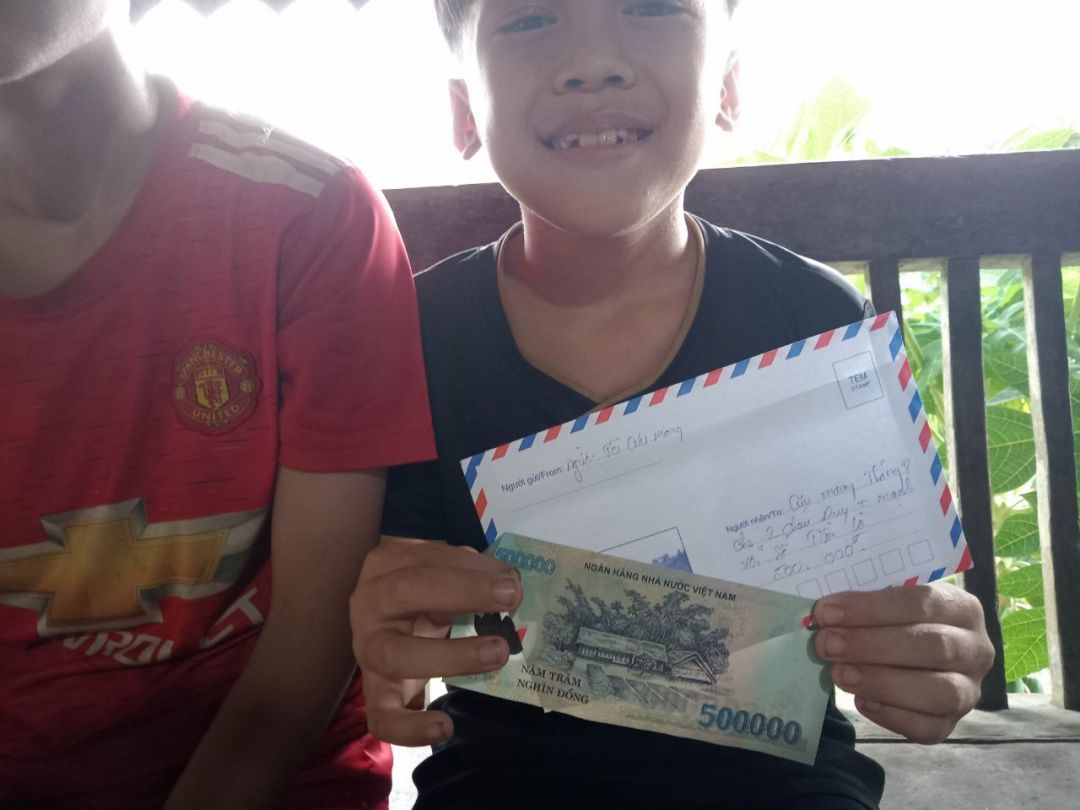 Chào cả nhà, Alexander xin cập nhật hình ảnh trao CMTX hoàn cảnh 2 cháu Duy,  Con tháng 12/2023. Số tiền 500.000 đồng. Cảm ơn cả nhà. Tụi con đã trao xong hoàn cảnh 2 cháu tháng 11- tháng 12. Mong cả nhà tiếp tục giúp đỡ hoàn cảnh 2 cháu ạ