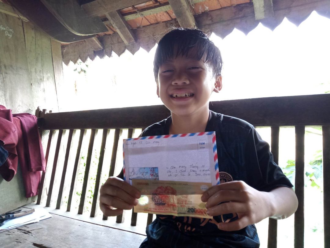 Dạ cháu cảm ơn cô ạ, cháu đã nhận được tiền CMTX của bác Sẻ chia mỗi tháng 100.000 đồng từ tháng 10 đến tháng 12 hoàn cảnh 2 cháu : Duy,Côn và hoàn cảnh chú An ạ. Mong cả nhà tiếp tục chung tay giúp đỡ hoàn cảnh 2 cháu Duy Con mỗi tháng 300.000 đồng nữa ạ. Cảm ơn cả nhà.