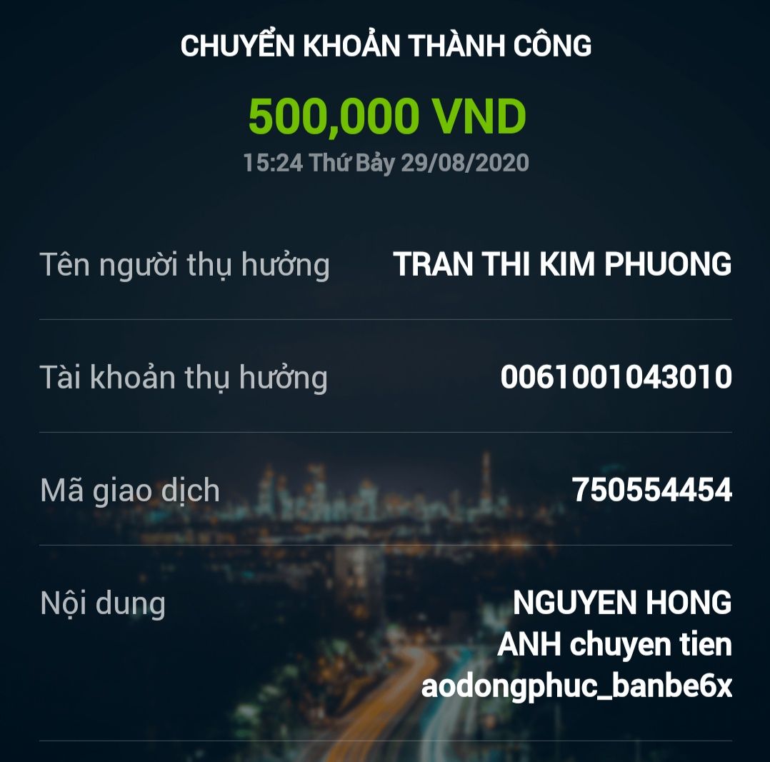 Thocon đã chuyển tiền rồi các bạn nhé.