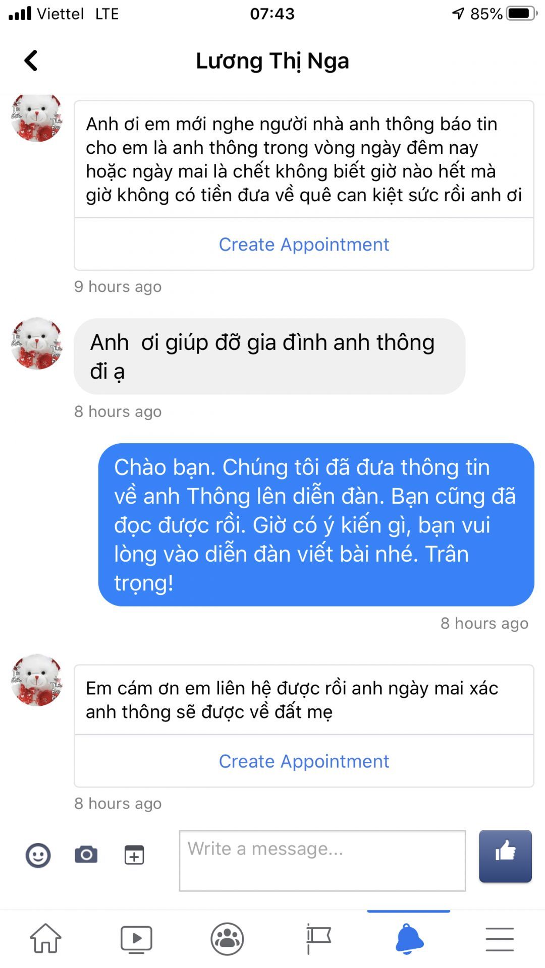 Chị Nga cũng mới điện thoại cho 6x và mình cũng chỉ biết hướng dẫn chị ấy liên hệ để tìm kiếm xe chuyển viện miễn phí để đưa anh Thông về quê.