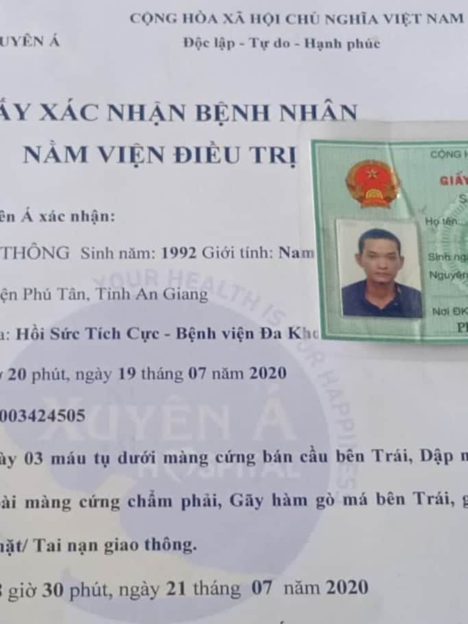 Hiện tại, bạn Thông đang nằm điều trị tại bệnh viện Đa khoa Xuyên Á, Củ Chi. Các bạn ở gần khu vực này thu xếp ghé vào xác minh để kịp thời hỗ trợ nhé.