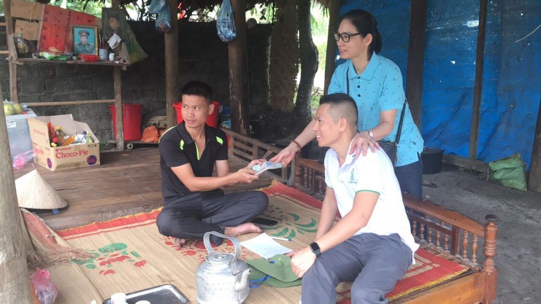 Nhóm cũng đã trao 30 triệu VND tiền tạm ứng cho thợ cả.