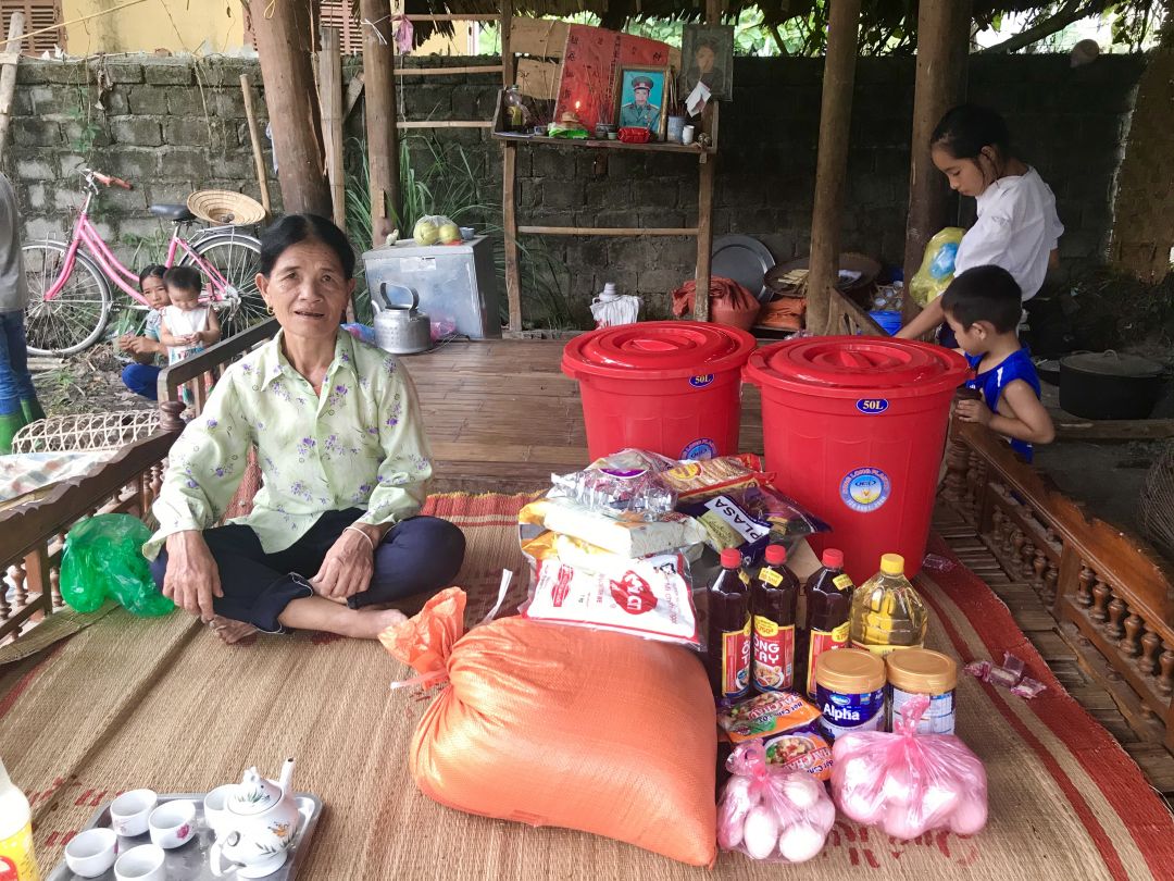 Hôm qua khi nhóm tới thăm, bữa trưa nhà bà chỉ có cơm nguội và đậu phụ chiên. Sáng nay nhóm đã mang tặng gia đình bà một số vật dụng và thực phẩm từ kinh phí của các anh chị Cuadedanh, Phương Toàn Thế, Hiệu Đào, bạn Thuỷ.