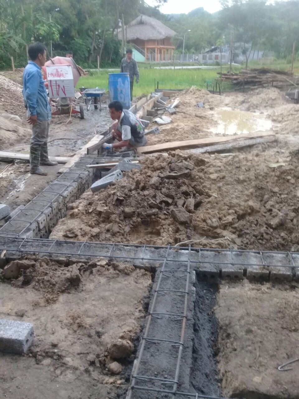 Báo cáo anh chị cho dù hôm nay trời mưa và theo dự báo thời tiết mấy hôm nữa ngoài bắc có 2 ngày trở lạnh, nhưng tiến độ ngôi nhà 34 hôm nay đã xong phần móng ạ.