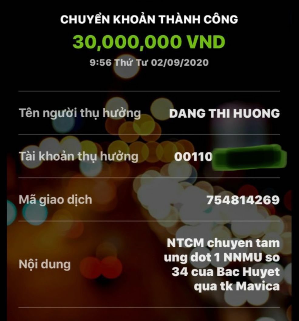 Mavica đã nhận được tạm ứng đợt 1 NNMU 34 số tiền 30.000.000đ và sẽ chuyển cho người nhận ạ!