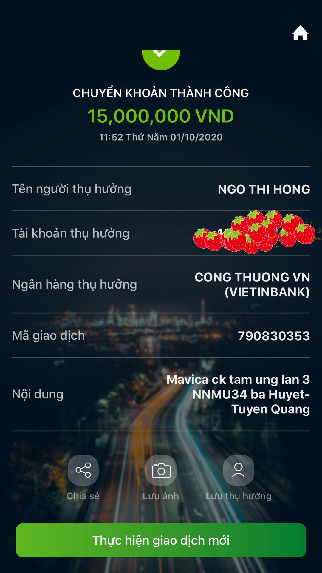 Thocon đã chuyển tiền tới Mavica rồi các bạn nhé.