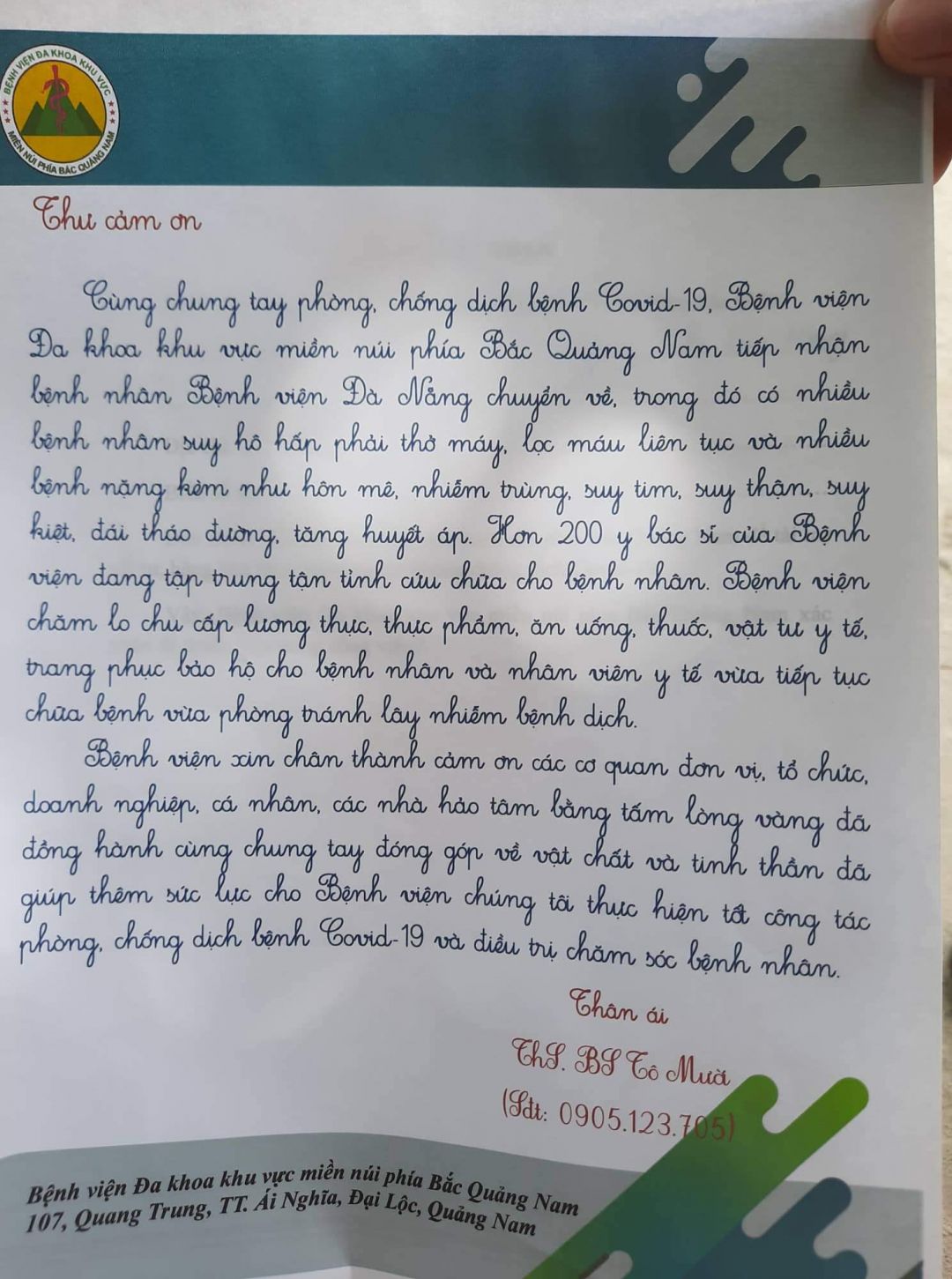 Em xin đại diện bà con, bệnh nhân và y bác sĩ BVĐK miền núi Bắc-Quảng Nam chân thành cảm ơn các MTQ đã hỗ trợ ạ! Chúc bình an đến cả nhà!