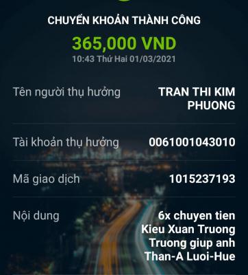 Cảm ơn bạn Trường đã CM gia đình T3/2021. Phần tiền anh Phan Trong Nguyên vẫn CM hàng tháng đến hoàn cảnh. Để giúp đỡ hoàn cảnh trong 2 tháng 4, 5 tiếp theo, em đề xuất xuất quỹ CMTX đến hoàn cảnh.