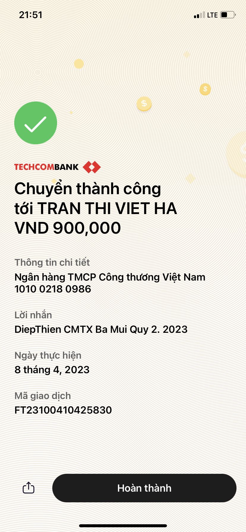 DiepThien xin gửi phần CMTX Q3.2023 tới bà Mùi. Nhờ Hà Trần thăm hỏi bà giùm nha.